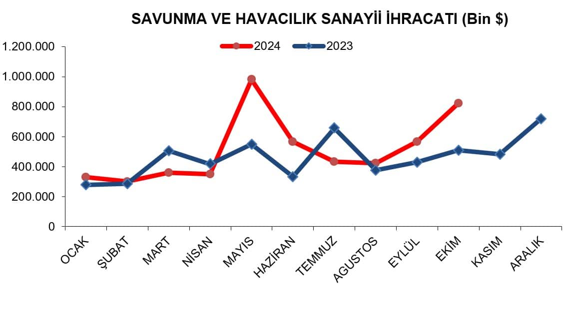 İşte 2023 ve 2024 arasındaki Savunma ve Havacılık Sanayii ihracatı Karşılaştırması;